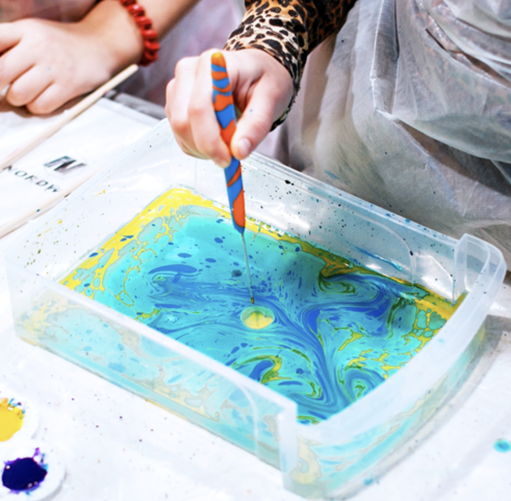Wear clothes that can get messy. Aprons are provided, but art making can involve splashes and drips.