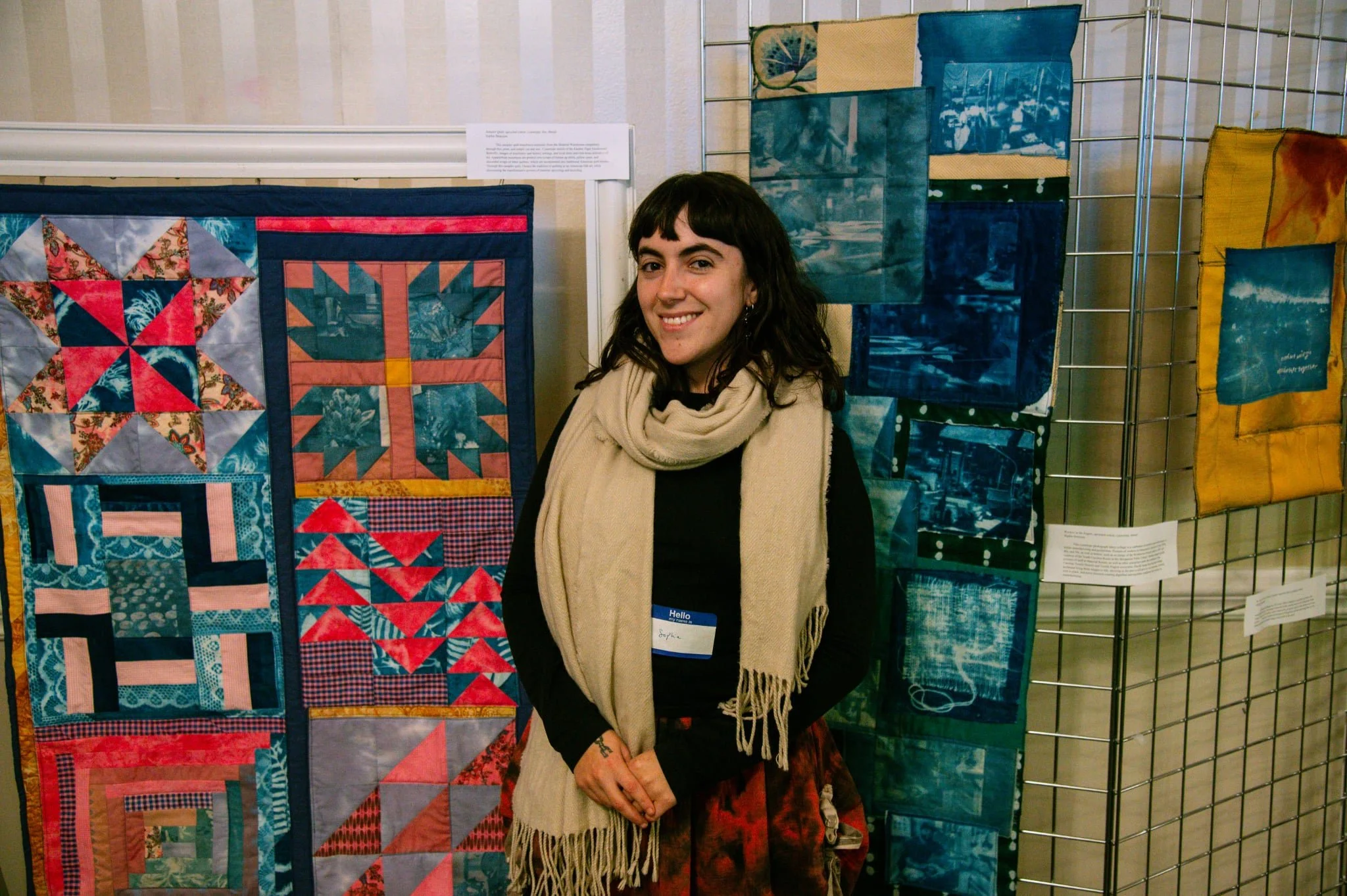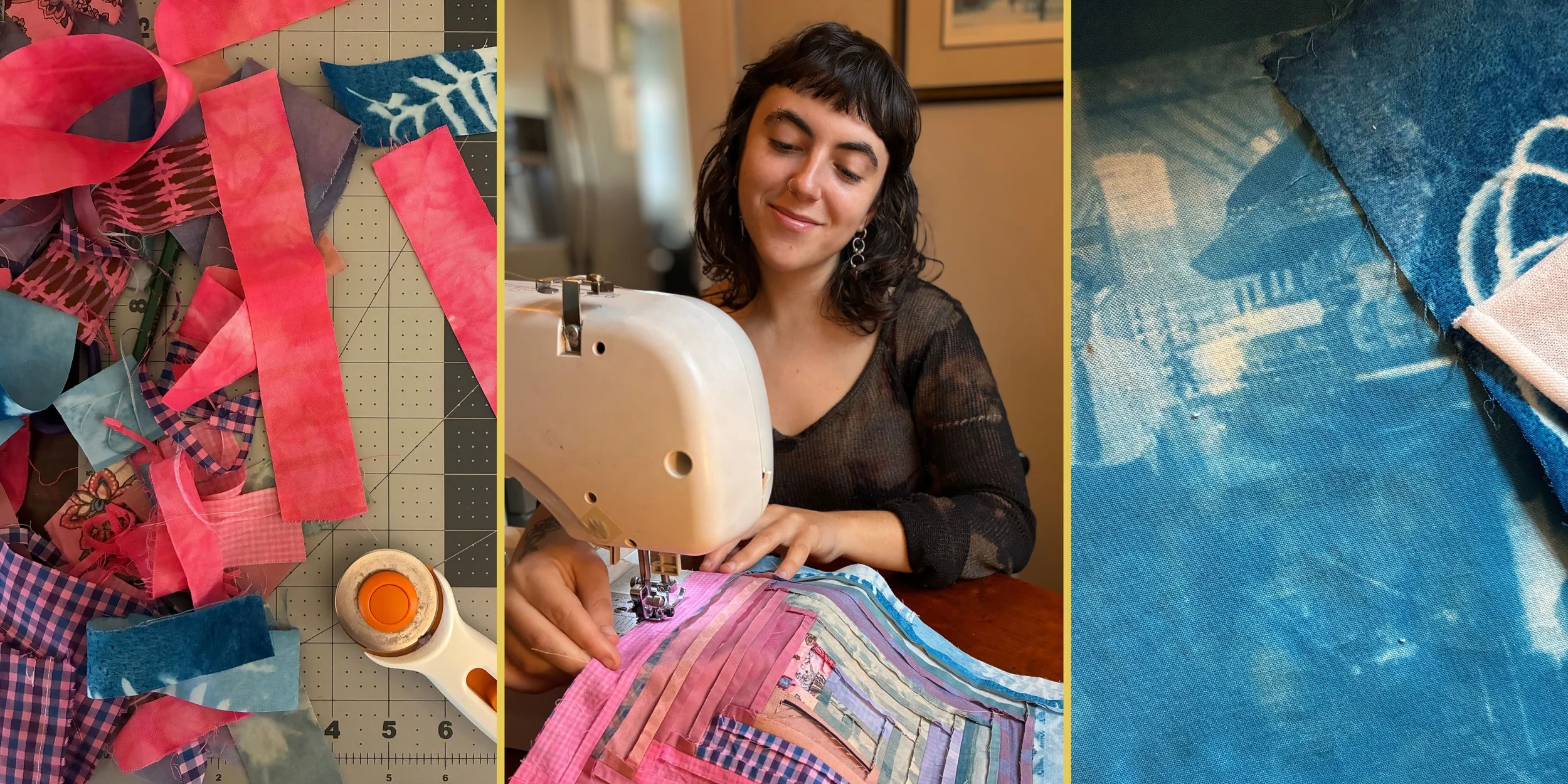 Her art practice blends quilting, printmaking, dyeing, and book arts - often using natural dyes, upcycled fabrics, and downcycled materials. Sophie has shared her work through residencies at Alchemy Art Center and Pillow Fort Arts Center, and she’s taught creative workshops ranging from cyanotype printing to eco-dyeing to soft bookmaking.